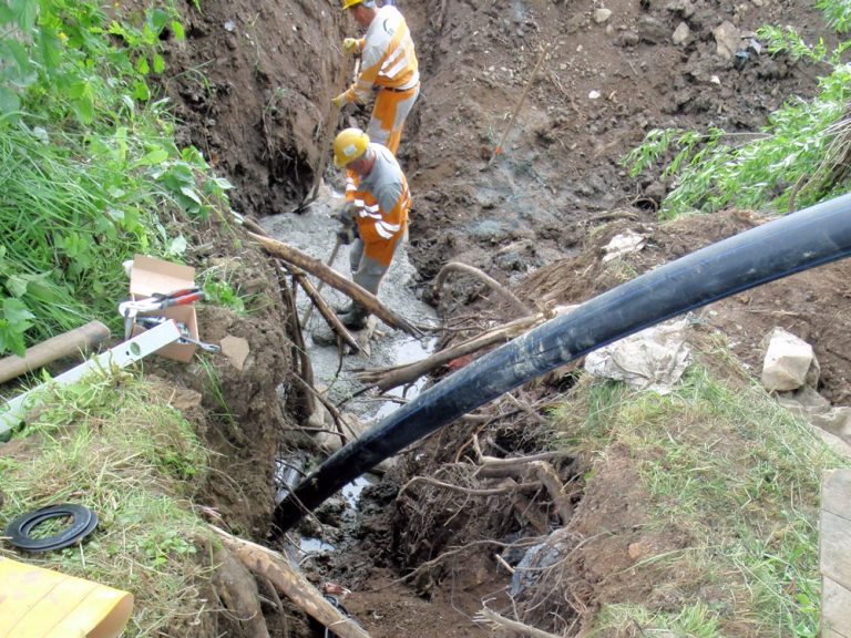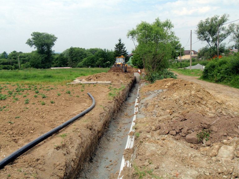 - výstavba rozvodného vodovodného potrubia DN 110mm v otvorenom výkope, dĺžka 2.829m, pre prívod vody do radov